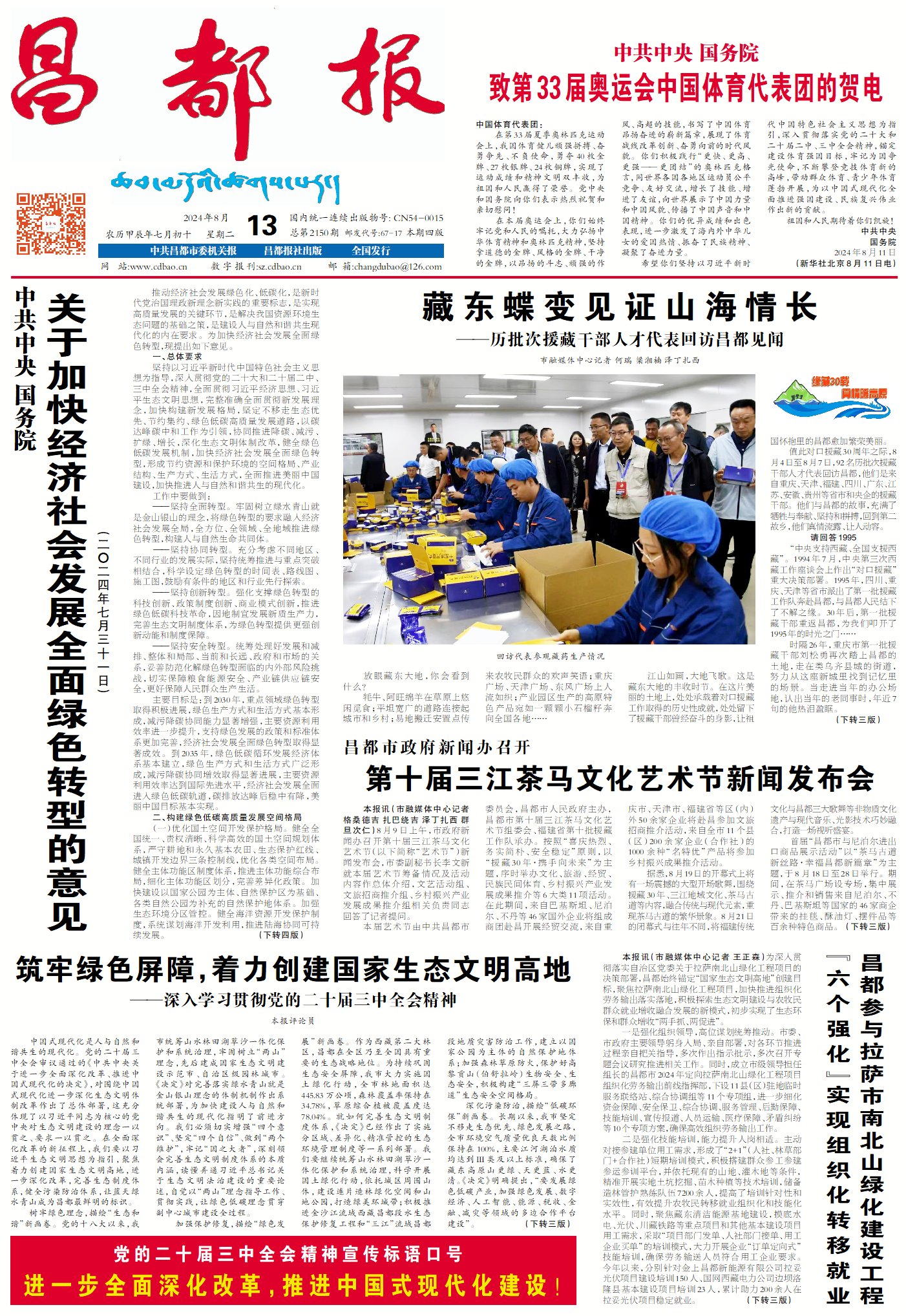 中國(guó)式現(xiàn)代化是人與自然和諧共生的現(xiàn)代化。黨的二十屆三中全會(huì)審議通過(guò)的《中共中央關(guān)于進(jìn)一步全面深化改革、推進(jìn)中國(guó)式現(xiàn)代化的決定》,對(duì)圍繞中國(guó)式現(xiàn)代化進(jìn)一步深化生態(tài)文明體制改革作出了總體部署,這充分體現(xiàn)了以習(xí)近平同志為核心的黨中央對(duì)生態(tài)文明建設(shè)的理念一以貫之、要求一以貫之。在全面深化改革的新征程上,我們要以習(xí)近平生態(tài)文明思想為指引,聚焦著力創(chuàng)建國(guó)家生態(tài)文明高地,進(jìn)一步深化改革,完善生態(tài)制度體系,健全污染防治體系,讓藍(lán)天綠水青山成為昌都最鮮明的標(biāo)識(shí)。